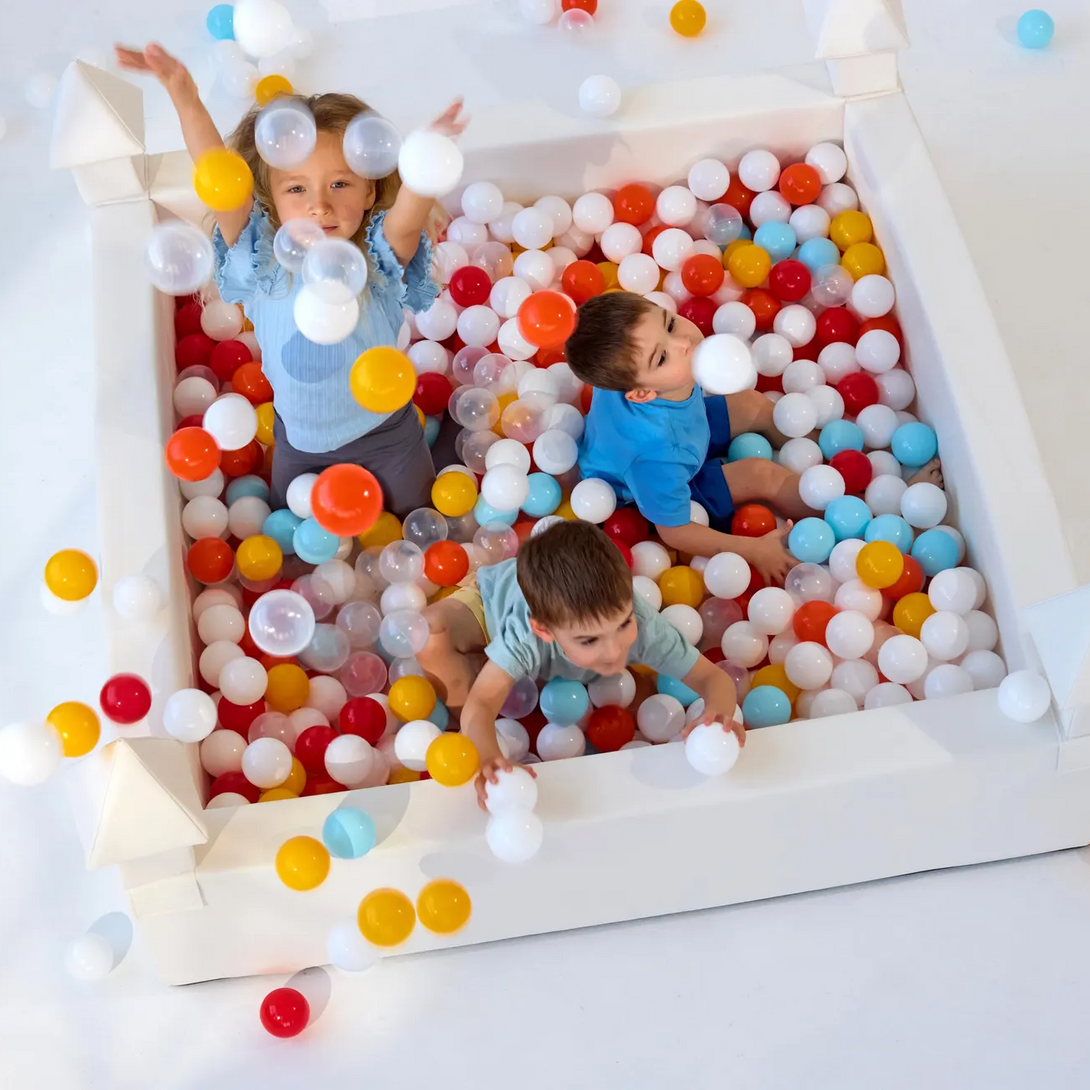 White Castle Foam Ball Pit — elegant soft play ball pool designed for modern homes and photo-friendly kids’ rooms. Made from durable foam with a premium fabric finish, safe, stylish and perfect for endless imaginative play.
